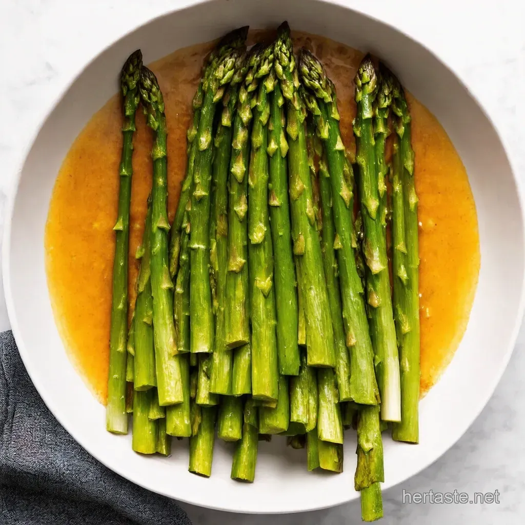 You could even sprinkle some toasted pine nuts for a bit of crunch and sophistication. Arrange the k_annotated: asparagus spears artfully on the plate.