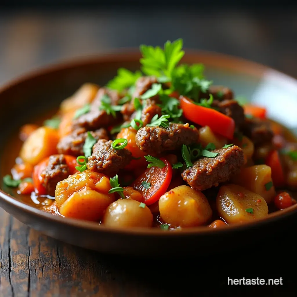 The initial seasoning is fundamental. Before the searing begins, the beef strips are bathed in a mixture dominated by low-sodium soy sauce, which provides the base umami. This is supported by aromatic ground cumin and dried oregano, lending an earthy, almost rustic warmth often found in traditional Andean cooking.