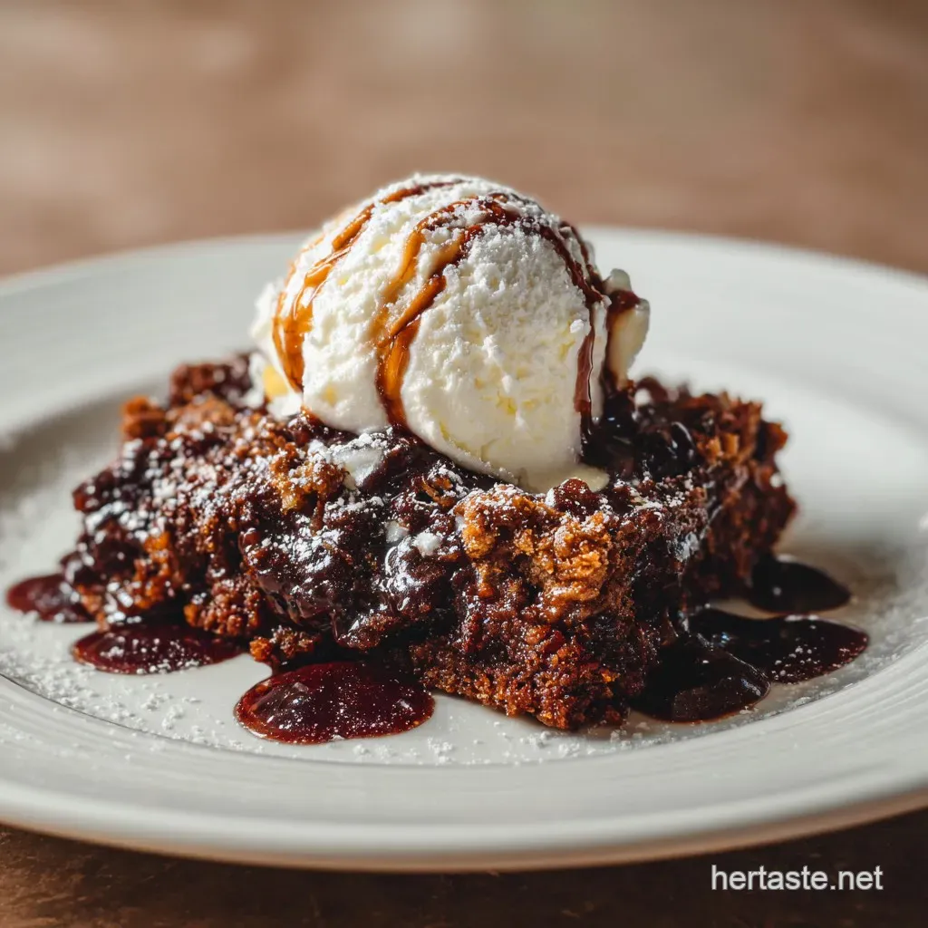 It is a decadent, layered dessert created by "dumping" ingredients into a pan without mixing. The combination of German chocolate cake mix, instant pudding, condensed milk, coconut, and pecans creates a rich, gooey texture that forms its own sauce during baking.