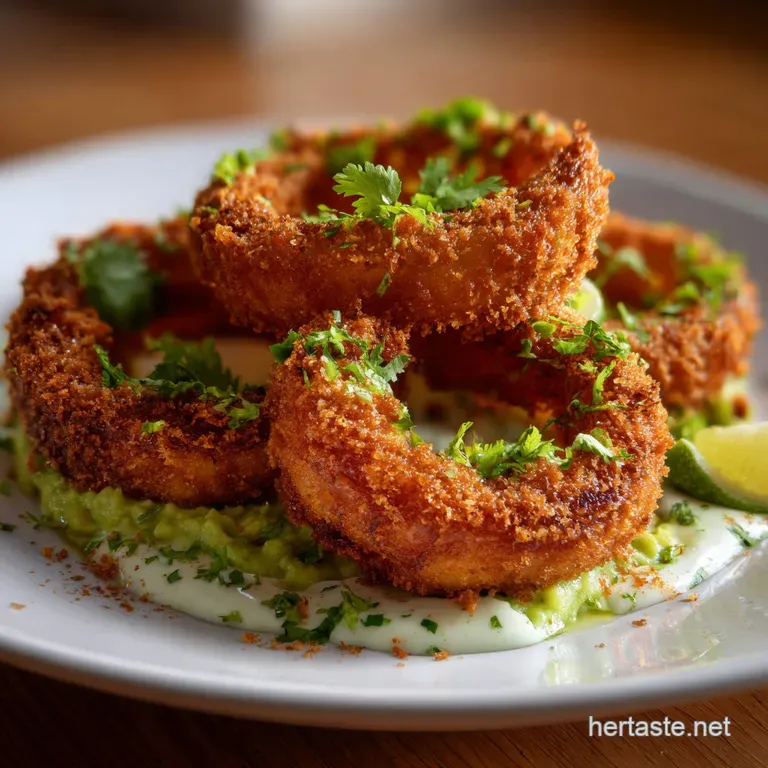Guacamole Stuffed Onion Rings with Zesty Lime Crema