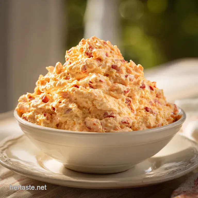 It is named for the inclusion of pimentos. These small, sweet red peppers are the defining vegetable element, added for color and a mild, sweet heat that complements the sharp cheese base.