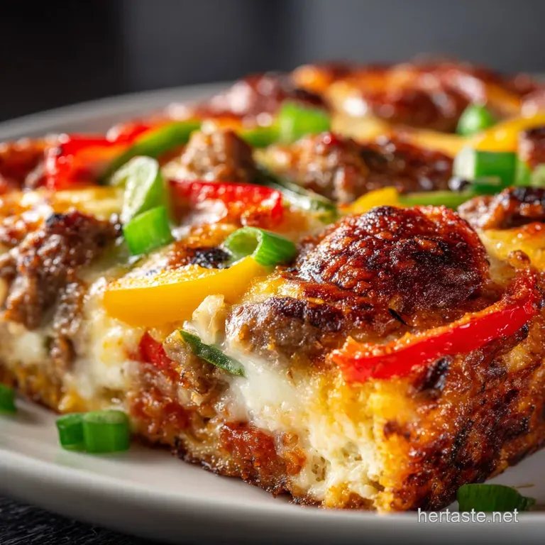 Think of this as an Italian American layered bake, borrowing the concept of a lasagna but swapping the pasta for a hearty, seasoned meat base. Instead of a wheat or cauliflower crust, the structural foundation is a firmly pressed layer of seasoned ground beef and Italian sausage. This is brilliant.