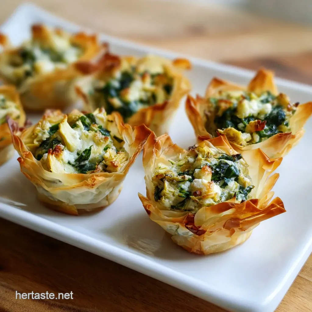 We are aiming for a specific sensory experience here. When you pull these out of the oven, the aroma of toasted garlic and sharp Parmesan should fill the room. The phyllo shells, which are a massive time saver, should have a golden hue that promises a loud crunch with every single bite.