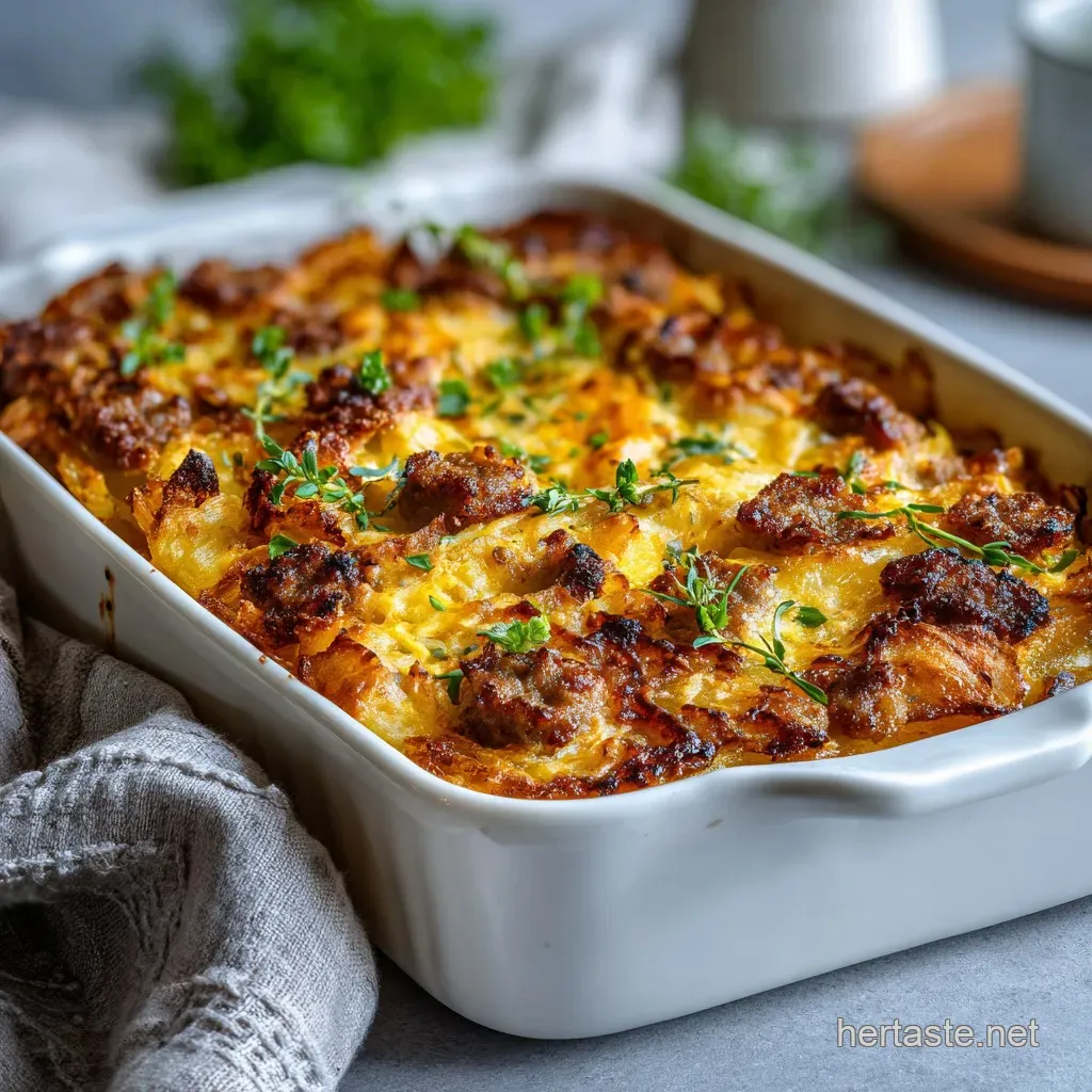 Breakfast Casserole: Crispy Hash Browns & Savory Sausage