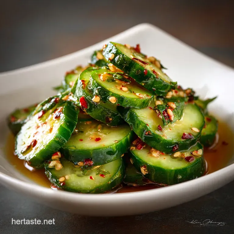 This dish is meant to be served ice cold. The chill enhances the crispness and makes the spice feel more refreshing. While you can eat it immediately, chilling it for 10 to 15 minutes allows the garlic to mildly mellow and the flavors to fully marry the cucumber slices.