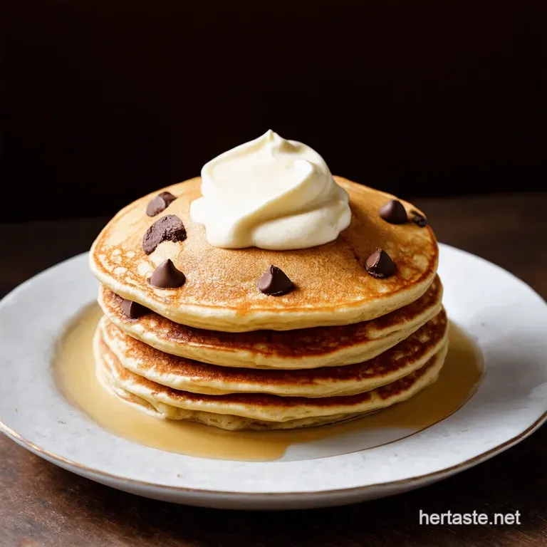 Alright, let's talk presentation. First, stack those American pancakes with chocolate chips high! A drizzle of maple syrup is essential, of course.