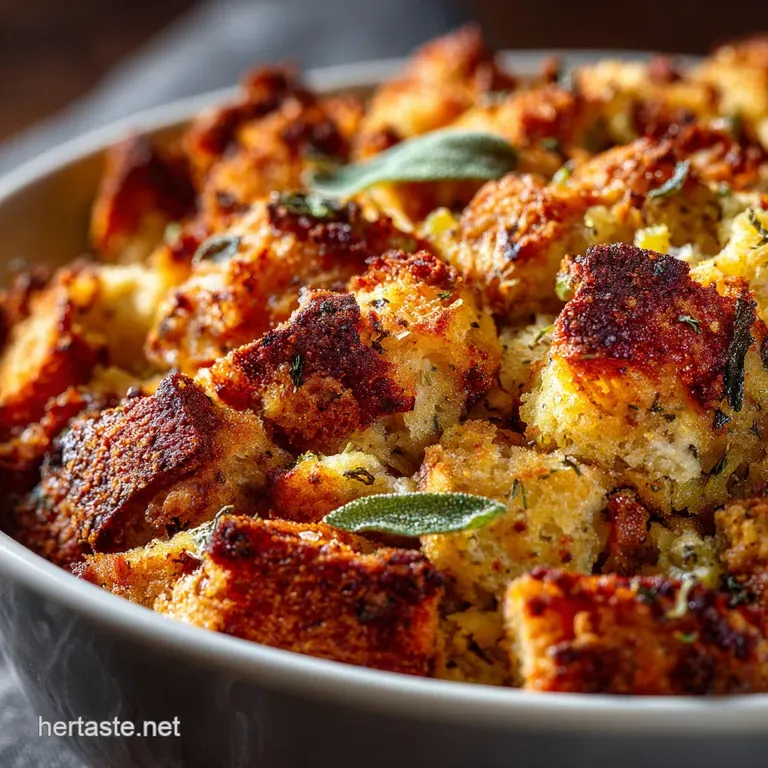 The key is controlling moisture during the cooking process. Bake the stuffing covered tightly with foil for the first 30 minutes to trap steam and ensure the center cooks fully. Then, remove the foil for the last 15 to 20 minutes; this allows the exposed bread cubes on top to achieve that highly desirable golden brown crispness.