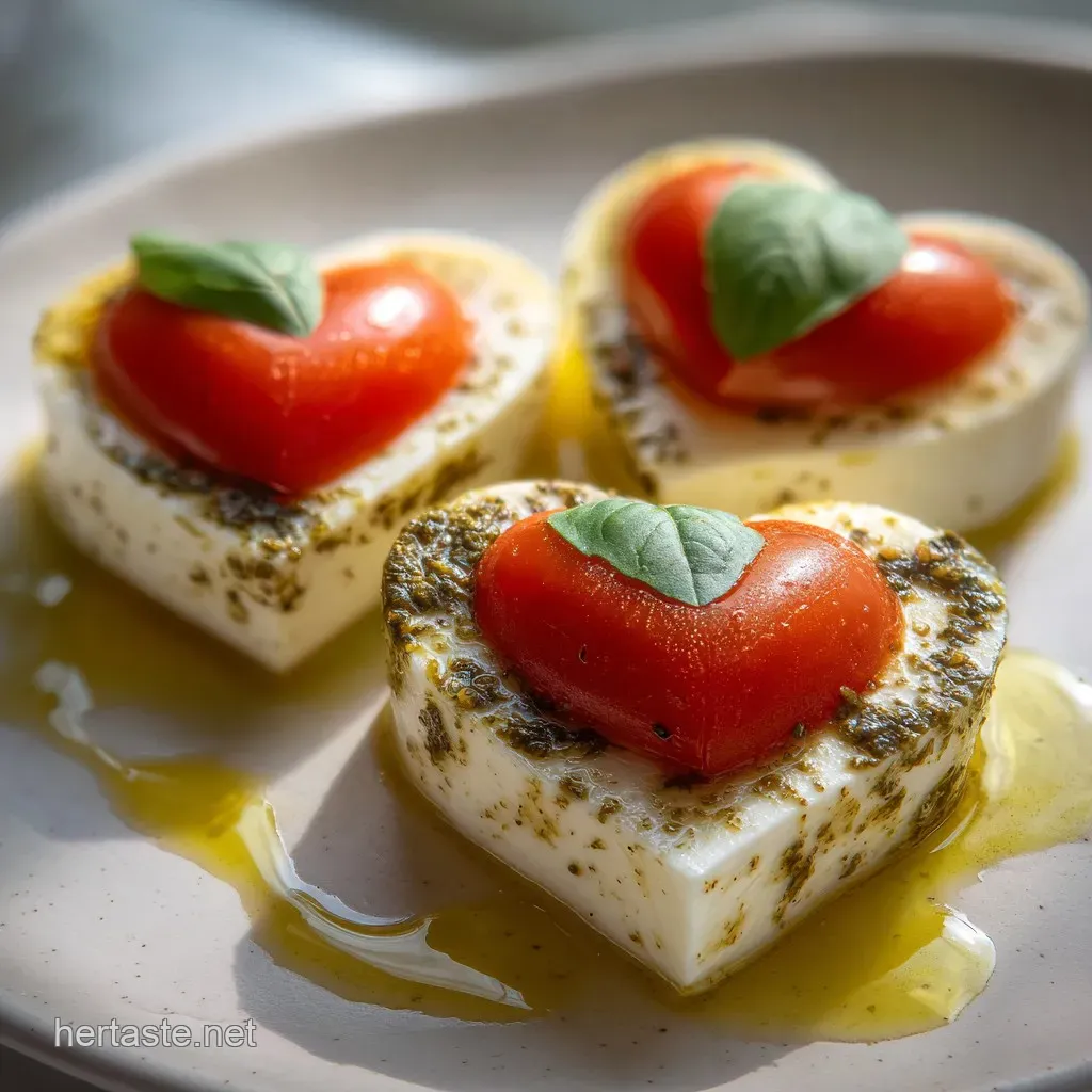 Presentation is everything on Valentine's Day. Arrange the hearts in a circular pattern on a large wooden board or a white ceramic plate. The red of the tomatoes and green of the basil really pop against the golden pastry.