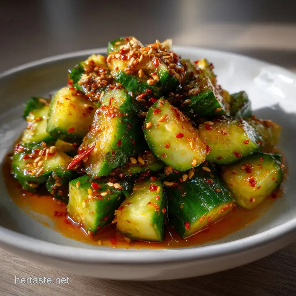 The spicy, bright red seasoning comes from Gochugaru (Korean chili flakes), which provides beautiful color without overwhelming heat, making this a delicious Spicy Cucumber Salad .